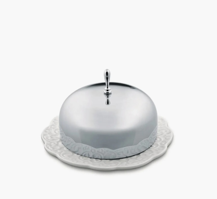 Dressed Butter Dish, designad av Marcel Wanders för Alessi, består av en smörbehållare med dekorerad bottenplatta i porslin och ett lock i rostfritt stål. Locket skyddar smöret i kylskåp och bevarar dess fräschör vid servering.