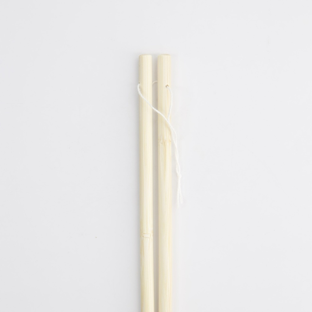 Pinnarna är tillverkade i obehandlad bambu med naturlig ytstruktur som ger ett bra grepp även när de är fuktiga. En enkel snodd i änden håller paret ihop mellan användningarna.