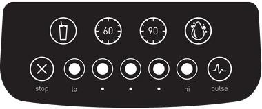 På panelen hittar du tydliga knappar för 5 hastigheter plus pulsfunktion, stoppknapp samt fyra förinställda program: Ett för smoothie, ett för rengöring och två tidsinställda funktioner som gör att du kan lämna blendern igång ett tag medan den sköter sig själv.