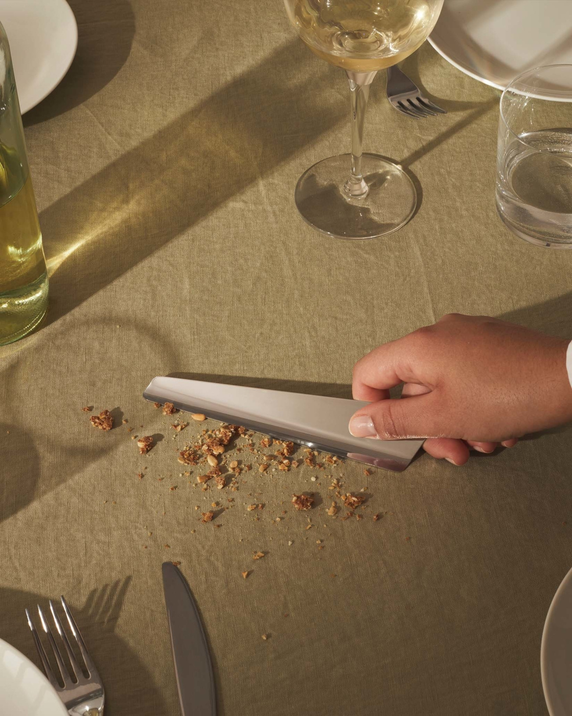 Ala Crumb Collector från Alessi är en kompakt smuluppsamlare som hjälper till att hålla bänkar och bord fria från smulor under matlagning, bakning och dukning, men framförallt mellan primi och secondi. Den har en noggrant balanserad form som gör den enkel och effektiv att arbeta med med en hand, så att du snabbt kan samla upp smulor och torrt nedfall utan att använda stora sopor eller sopskyffel. Den smala öppningen och den stadiga basen gör det lätt att rikta in smulorna och säkra att de fångas upp utan spill. Den är tillverkad i rostfritt stål med en elegant men funktionell design som både känns robust i handen och är lätt att rengöra efter användning. Crumb Collector är tänkt för kök där praktiska verktyg som effektiviserar arbetsflödet uppskattas, oavsett om det gäller vardagsbruk eller mer omfattande matlagning och bakning.