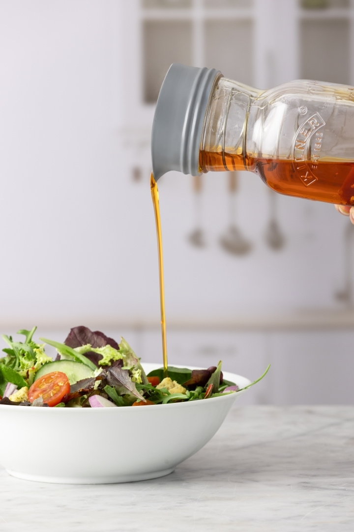 En mycket nim salladsshaker i flaskformat. Lätt att fylla på med ingredienser och sedan skaka som om du vore Shakira för att sedan dressa din franska potatissallad.