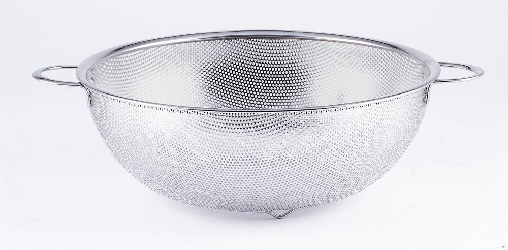 Det här är ett rakt och funktionellt durkslag med två handtag och en fot, vilket gör att det kan stå stabilt på bänken medan grytan töms. Det tål diskmaskin och kanten är ca 9 mm tjock, något som håller formen även efter lång tid i bruk.