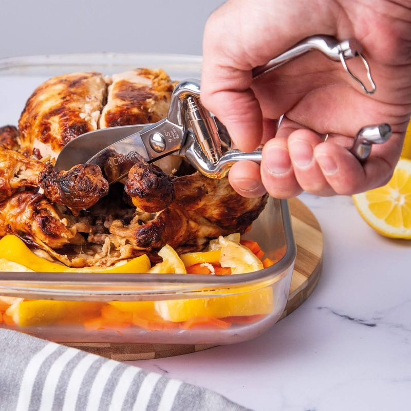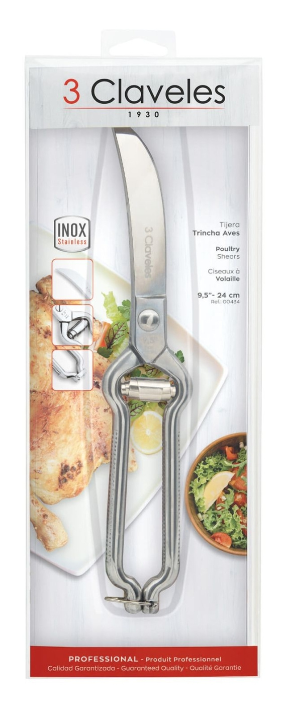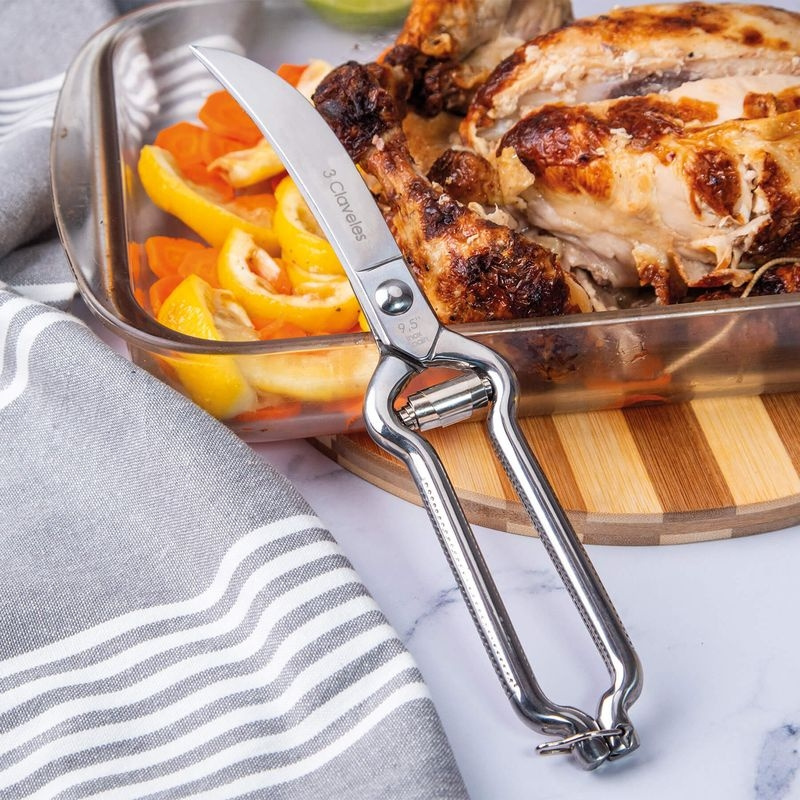 Det här är inte en sax för att klippa baconförpackningar. Det är ett verktyg för dig som bryter ner hel fågel på riktigt. 3 Claveles fågelsax är byggd i massivt rostfritt stål med en mekanik som känns mer som ett precisionsverktyg än en köksaccessoar. När du delar upp kyckling i åtta delar, öppnar upp en anka inför confit eller går igenom bröstbenet på en majskyckling för spatchcock, märker du direkt skillnaden. Den biter, utan att krossa. Den skär, utan att slita.