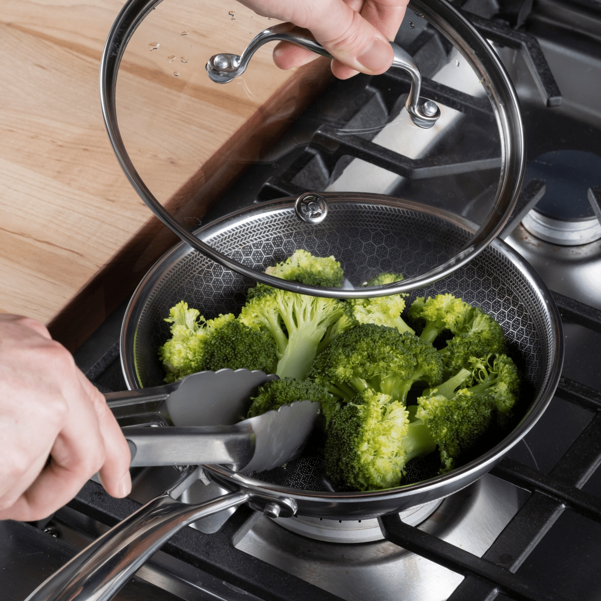 Locket är tillverkat i härdat glas för tålighet och stabilitet, kompletterat med en robust stålkant som klarar vardagligt slitage. Den transparenta ytan gör att du kan följa tillagningen utan att lyfta på locket, vilket hjälper till att bevara värme och fukt - särskilt vid såser, grytor och rätter där saftighet är viktig.