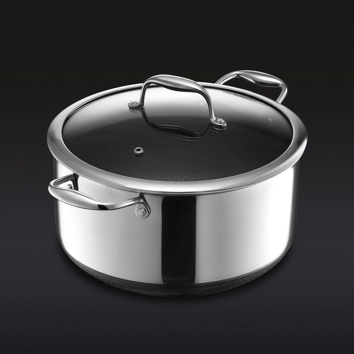 Hexclad Hybrid gryta med lock 7,6 L passar dig som ofta lagar större mängder mat och vill ha en rymlig gryta med jämn värme och tålig konstruktion.