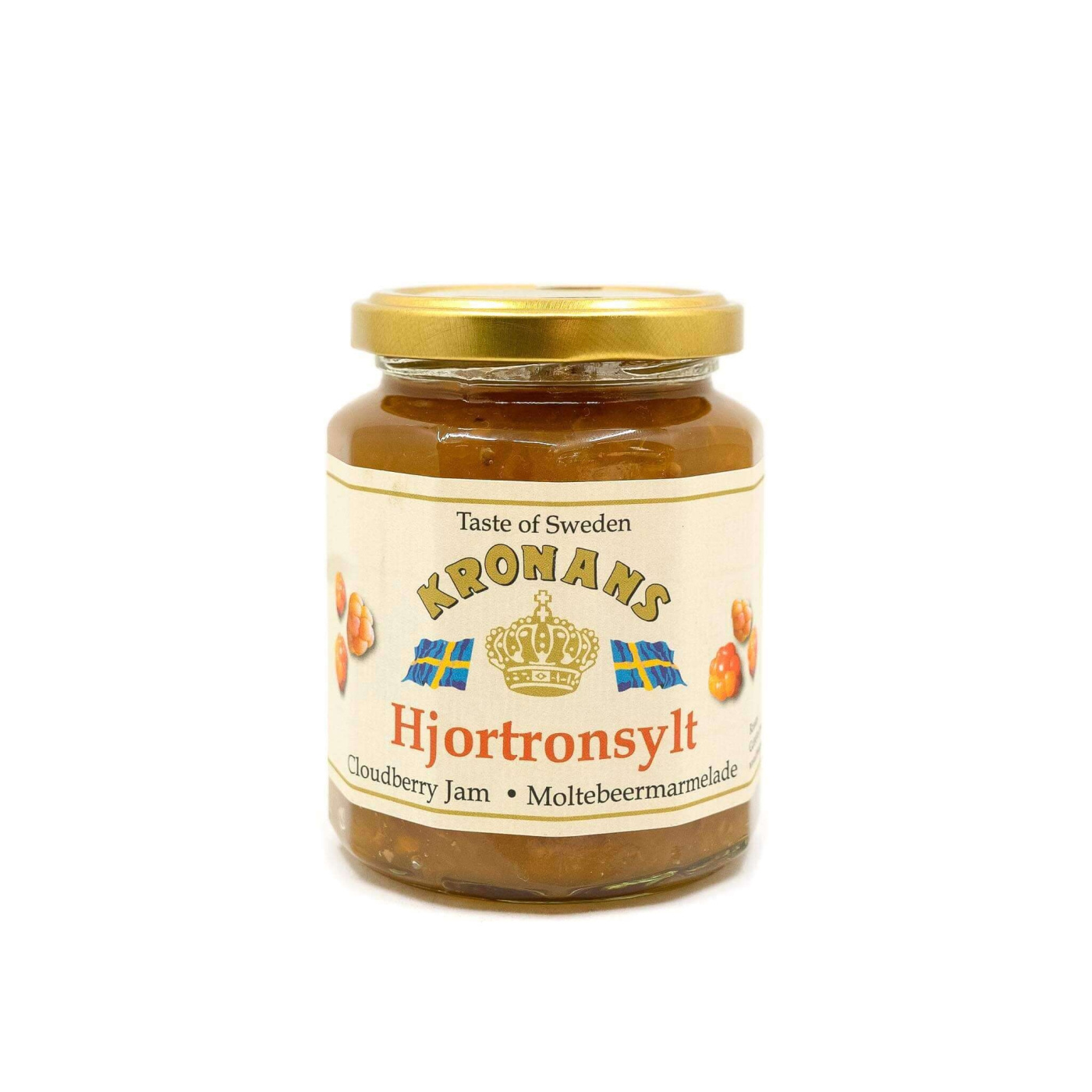 Kronans Hjortronsylt är en riktig norrländsk klassiker – gjord på gyllene, sötsyrliga svenska hjortron från de norrländska skogarna. Perfekt till pannkakor, våfflor, gröt, yoghurt eller som lyxig smaksättare i desserter och bakverk.
