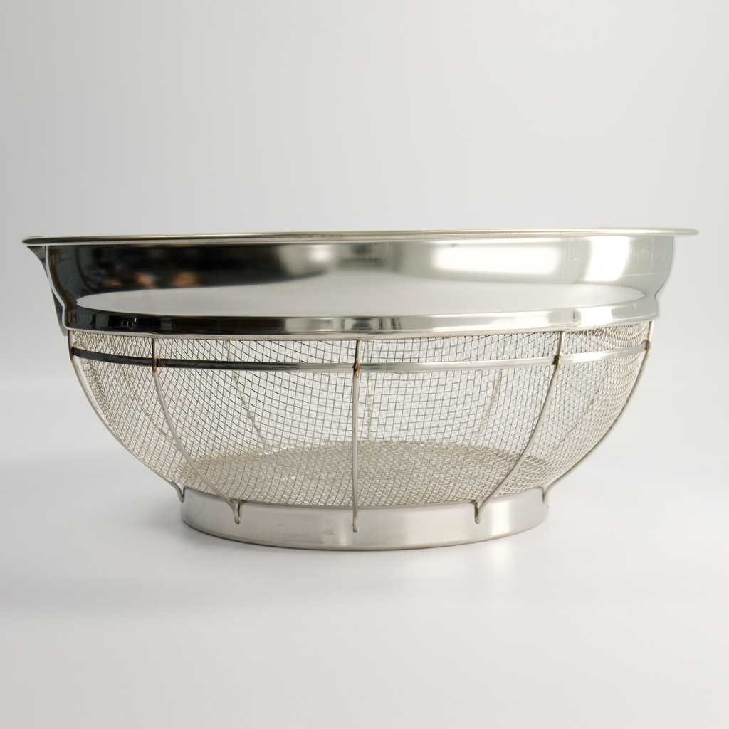 Durkslaget bygger på samma principer som ett traditionellt zaru, men med modern, industriell hållbarhet. Den breda kanten ger stabilitet när du placerar det över diskhon eller på en skål, och den upphöjda bottnen låter vätskan rinna fritt utan att ingredienserna kommer i kontakt med underlaget.