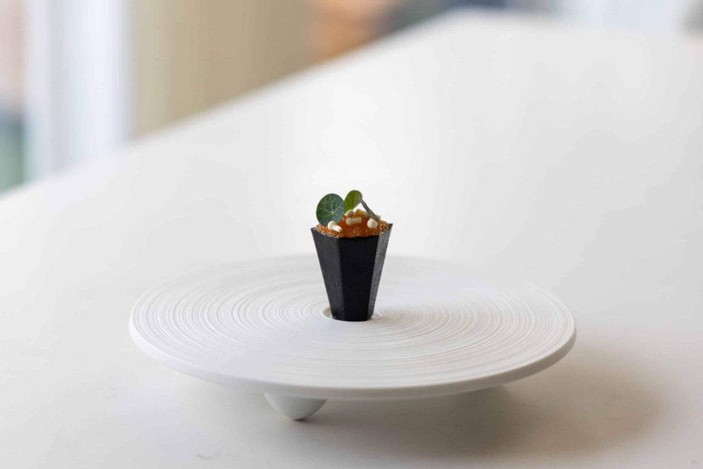 Det som gör krustaden så användbar i ett professionellt kök är att det färdiga skalet fungerar lika bra för kalla som varma fyllningar. Sashimi med ponzukräm och rom. Hummer med en lätt citrusemulsion. En varm ragù med örter och parmesan. Eller varför inte något sött till dessertgången, en crispig blomma fylld med syrénkräm och färska bär? Blóm-formen tillför en estetisk dimension som gör att presentationen fungerar utan att man behöver tänka för länge på garnityret.