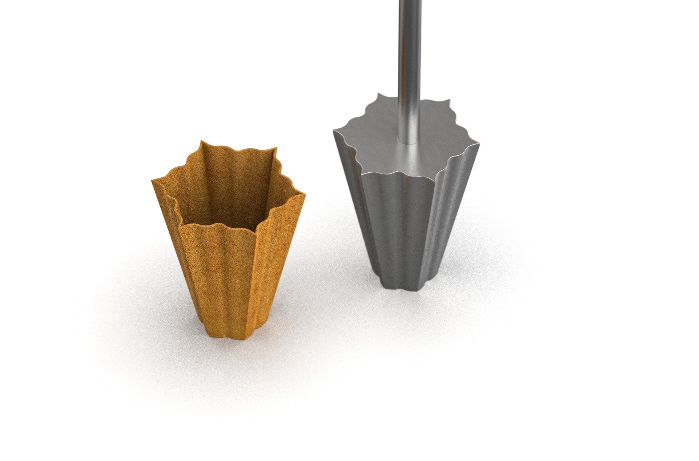 Blóm Pie Tee är Moldbrothers blomformade tolkning av det klassiska krustadjärnet, med skarpa, väldefinierade kronblad som skapar ett skal med en genuint vacker kontur, 3,5 x 4,0 x 4,9 cm. Det är aluminium genomgående, tillverkat i Nederländerna, och det hanterar temperaturskiften utan att klaga. Varmt, kallt, direkt från oljan till ett kylt fat, ingen skillnad.