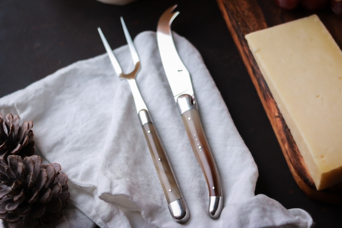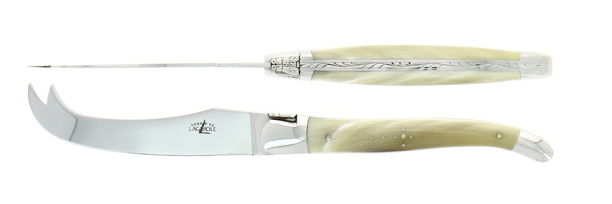 Ost-set, Handtag av Ljust Horn, blank, Tradition - Forge de Laguiole