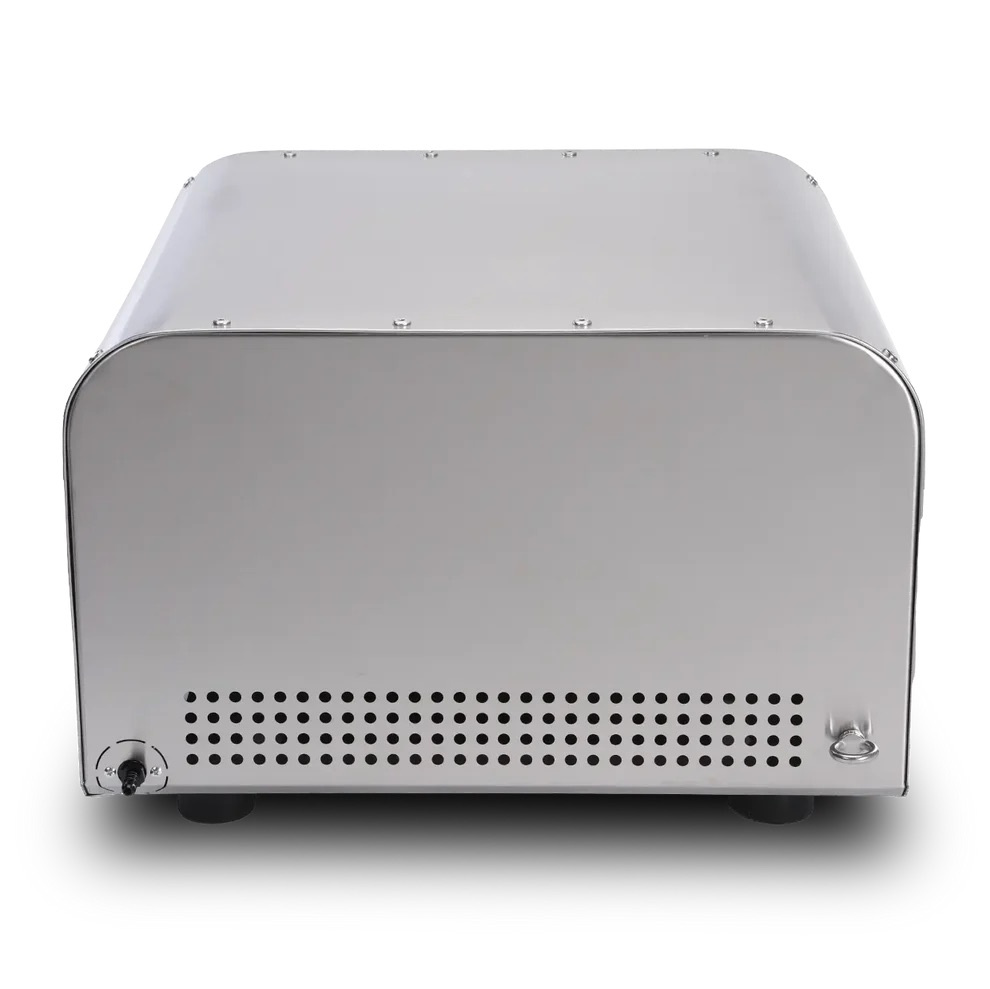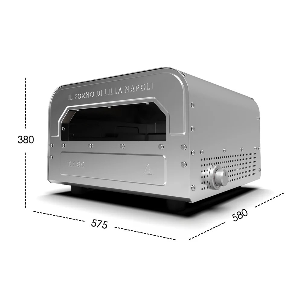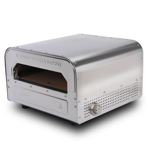 Il Forno di Lilla Napoli är byggd helt i rostfritt stål av kvalitet SS304, vilket ger överlägsen hållbarhet och lång livslängd. Endast undersidan är gjord i aluminiserad plåt för optimal värmebalans. Den medföljande biscottistenen är speciellt utvecklad för att undvika bränd botten, en av hemligheterna bakom en perfekt napolitansk pizza. Köp till en annan sten för att laga "svennepizza".