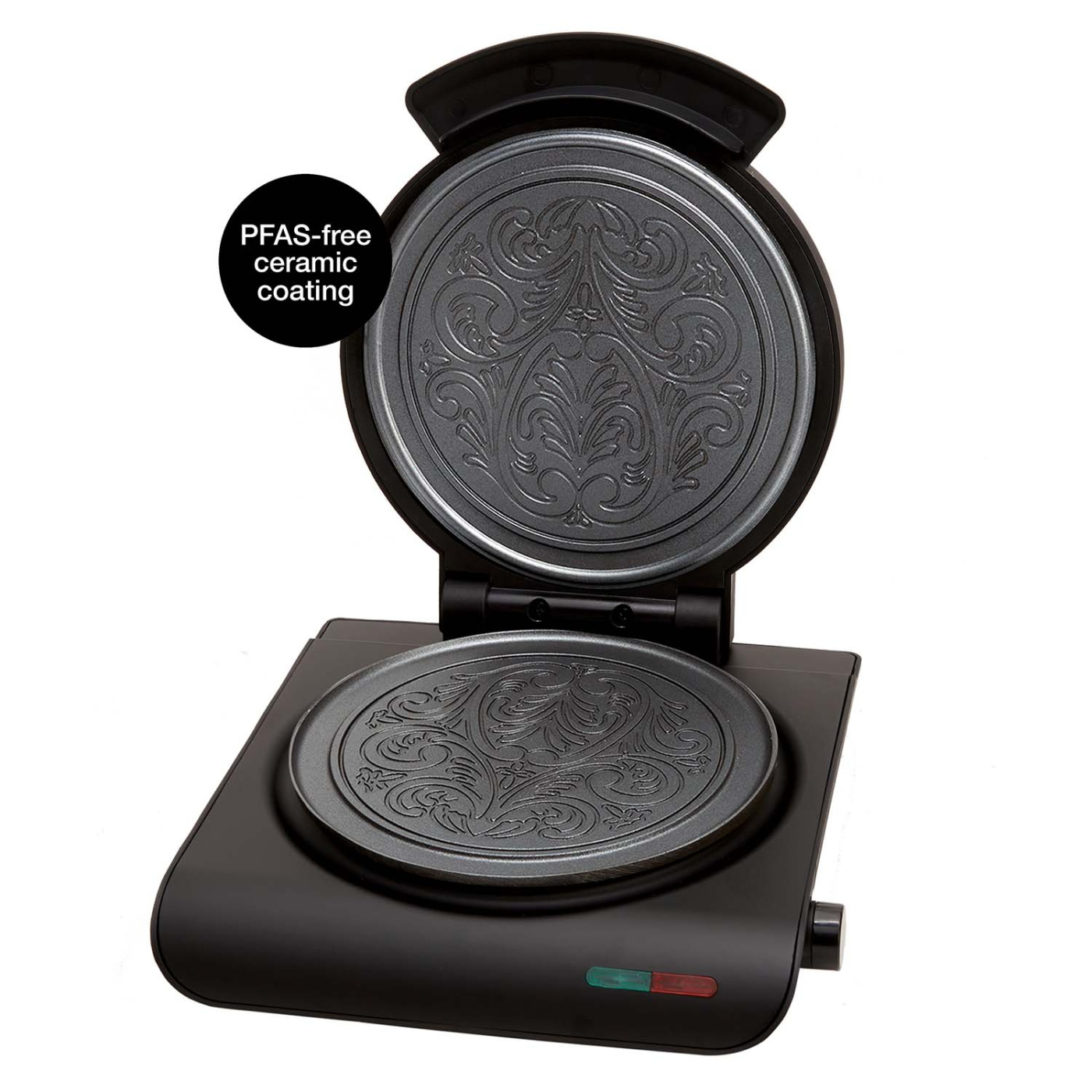 "Rånjärn från Åviken med snygg design. Perfekt för att göra krispiga glasstrutar/dessertrån med fint mönster. Rånjärnet har plattor tillverkade av tjock gjuten aluminium med non-stick beläggning. Mönstret är hämtat från Hallingdal i Norge år ca 1750.