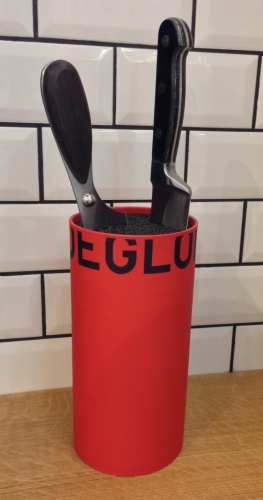 Litet och smidigt knivställ från franska Déglon. Trots att stället är litet till storleken rymmer det många knivar, tack vare att den istället för att ha fasta fack som många andra knivställ har) har ett innanmäte av plaststrån som gör att knivarna kan placeras i knivstället precis som du vill ha dem.