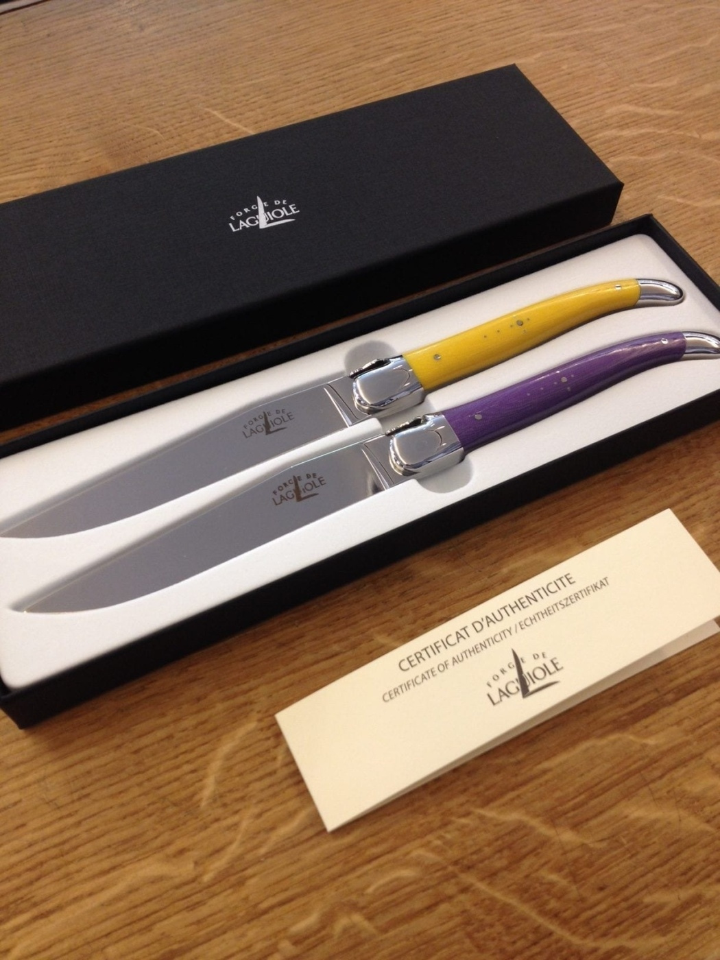 Knivarna är förpackade i en presentförpackning och givetvis med äkthetscertifikat.
