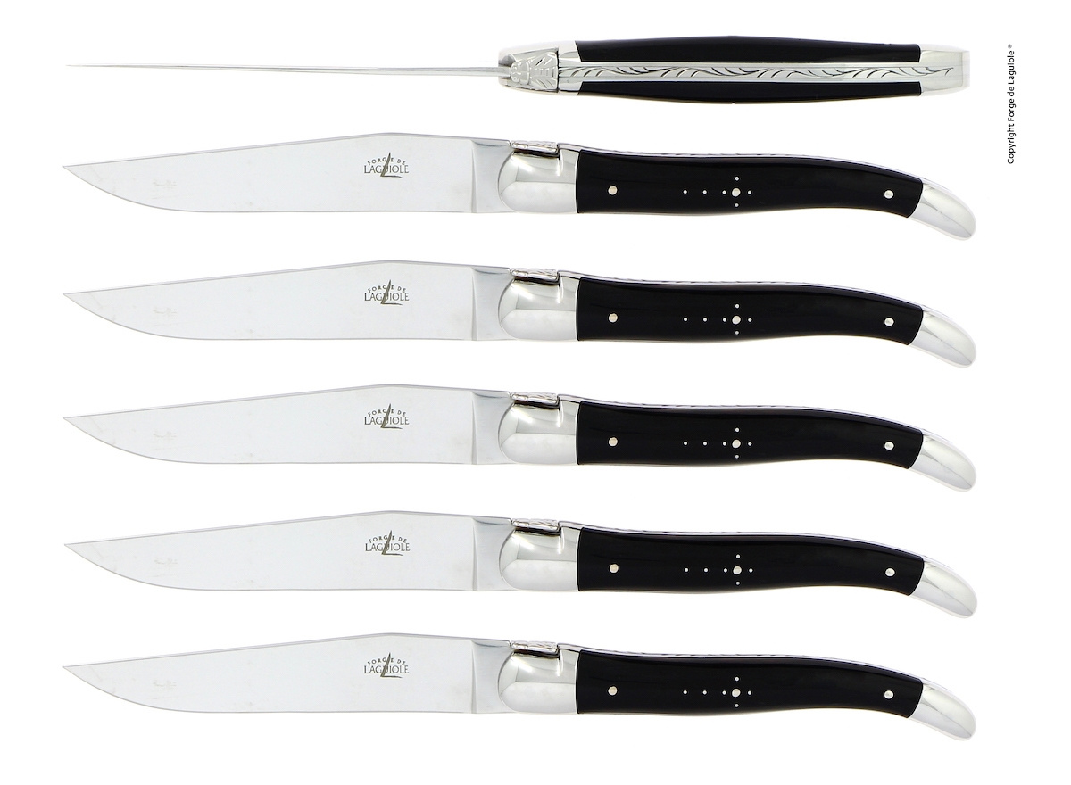Sex knivar, Handtag av Mörkt Horn, blank, Tradition - Forge de Laguiole