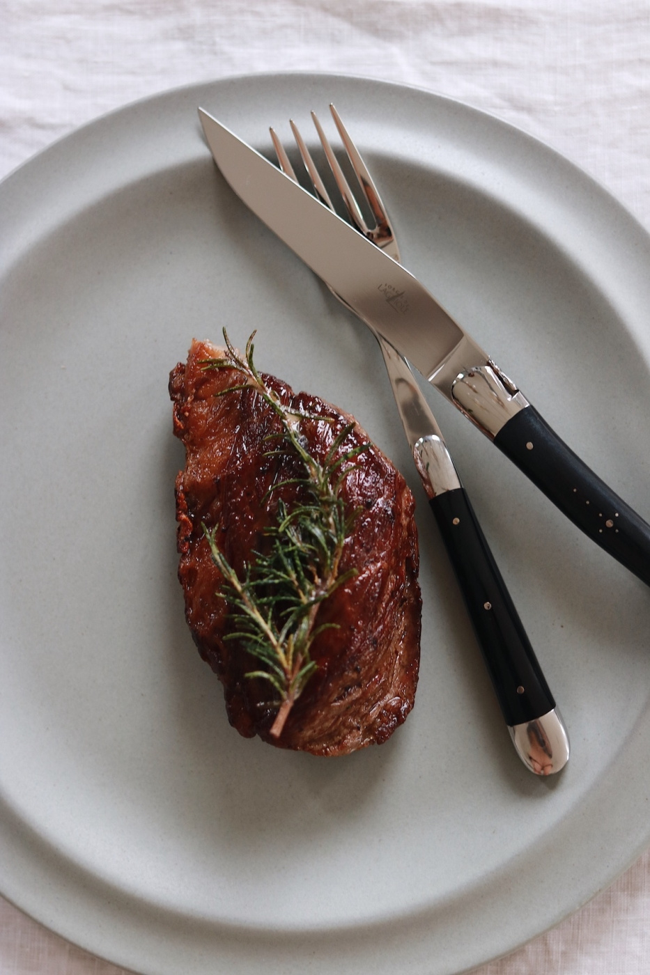 Här tummas inte en millimeter på kvaliteten utan varje bestick som lämnar den lilla fabriken är finjusterad på detaljnivå. Bladen av franskt rostfritt T14-stål smids på plats i fabriken i 1000-gradiga ugnar. Handtagen av trä eller djurmaterial skärs och poleras för hand av rutinerade knivmakare och passformen på knivbladet är himmelsk. Allting är perfekt! Det här är bestick som blir hemmets eller restaurangens självklara krona på verket och en njutning vid varje användning!