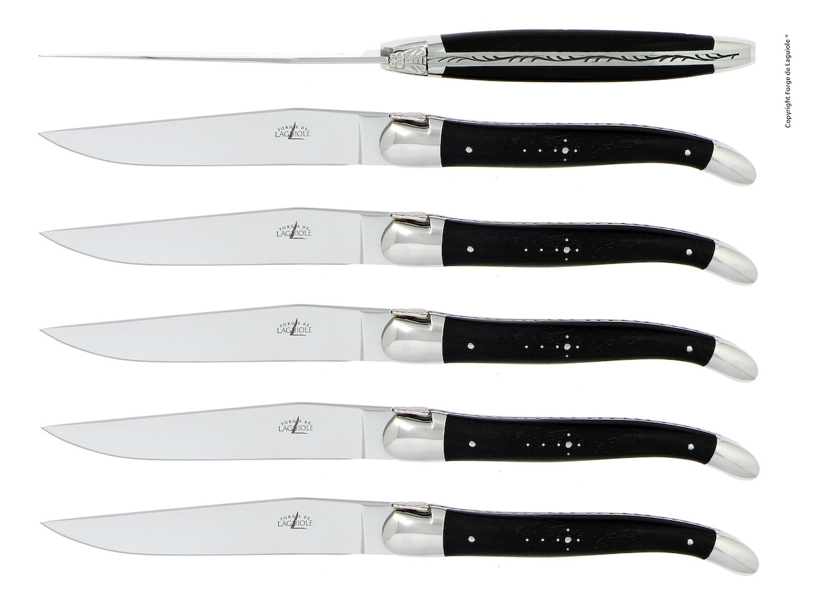 Sex knivar, Handtag av Ebenholts, blank, Tradition - Forge de Laguiole