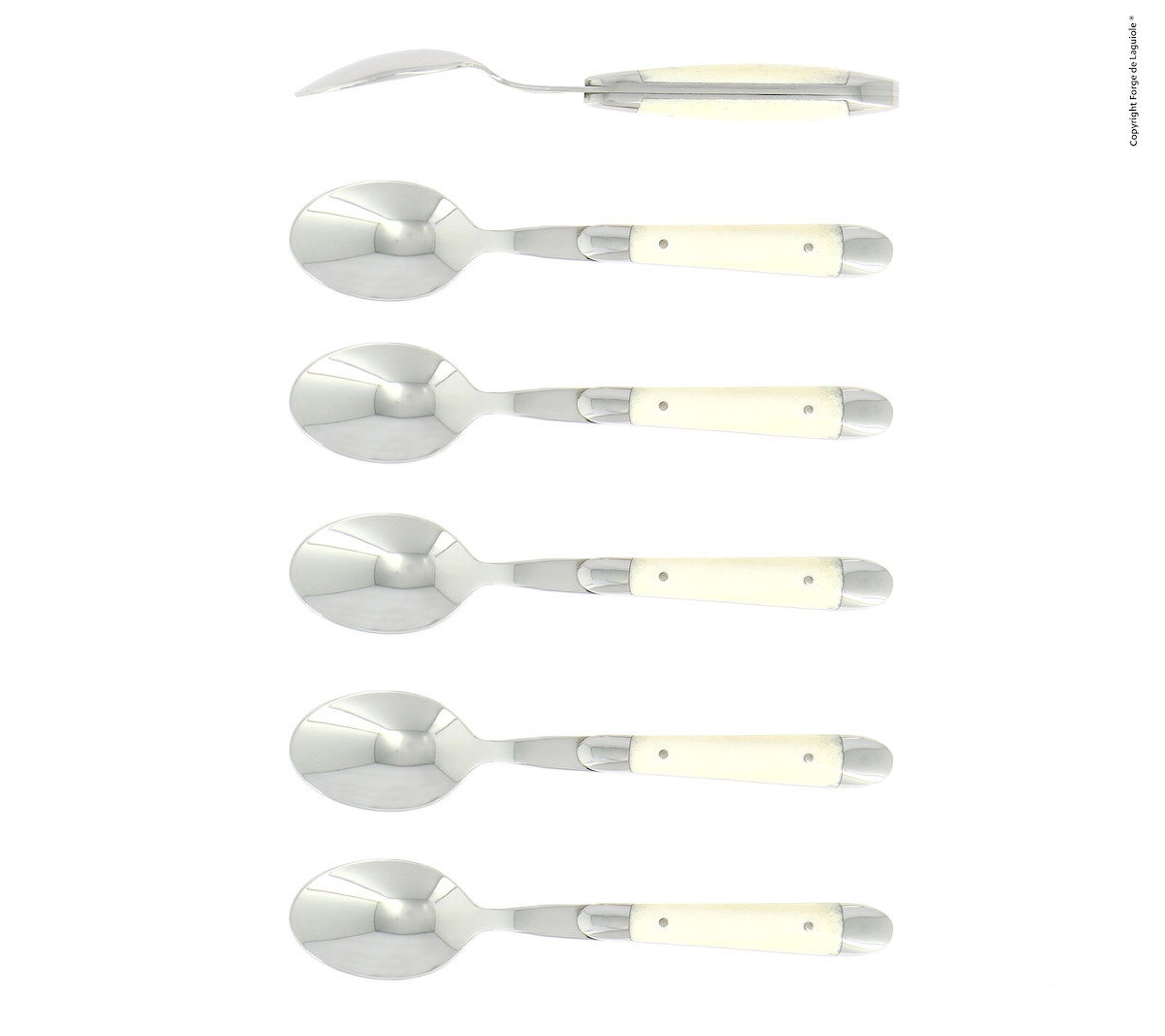 Sex dessertskedar, Handtag av Ben, blank, Tradition - Forge de Laguiole