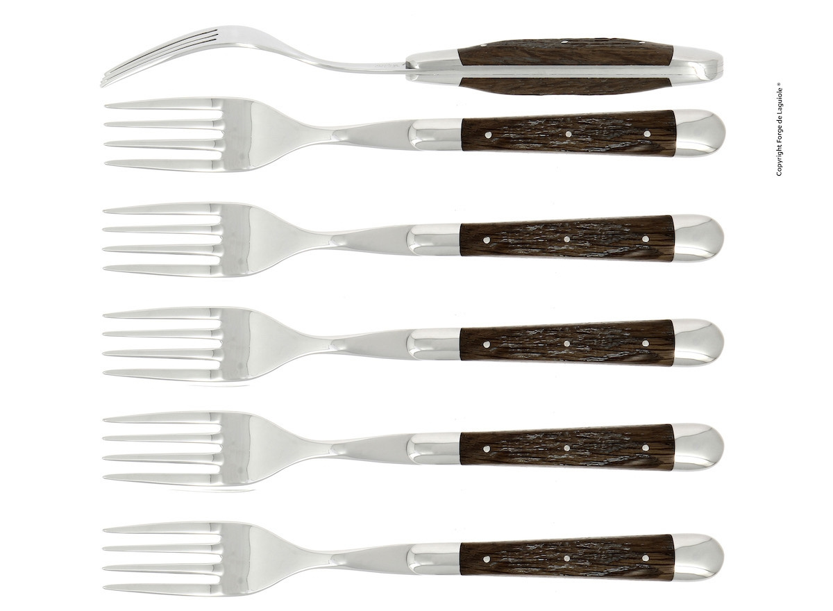 Sex gafflar, Handtag av Bark från Förstenad ek, blank, Tradition - Forge de Laguiole