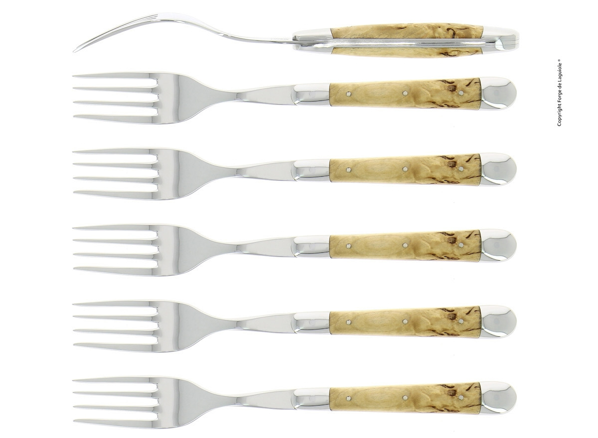 Sex gafflar, Handtag av Björk, blank, Tradition - Forge de Laguiole