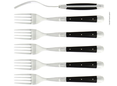 Sex gafflar, Handtag av Ebenholts, blank, Tradition - Forge de Laguiole