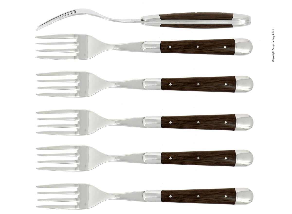 Sex gafflar, Handtag av Förstenad Ek, blank, Tradition - Forge de Laguiole