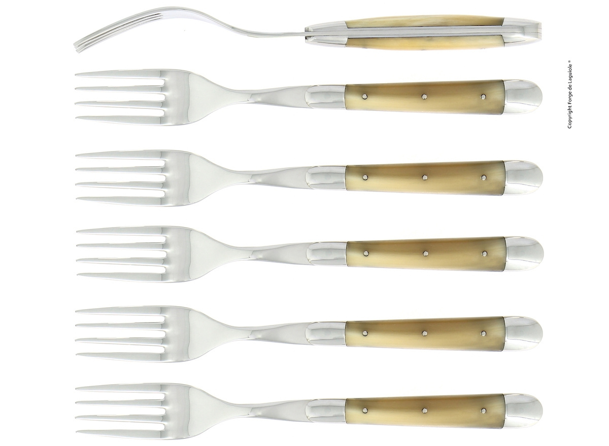 Sex gafflar, Handtag av Ljust Horn, blank, Tradition - Forge de Laguiole