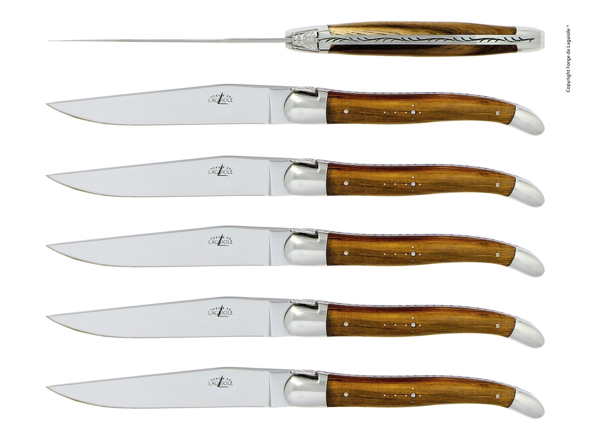 Set med sex stycken matknivar eller köttknivar från Forge de Laguiole.