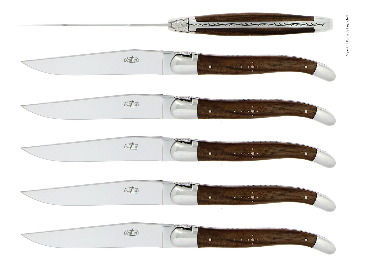 Set med sex stycken matknivar eller köttknivar från Forge de Laguiole.