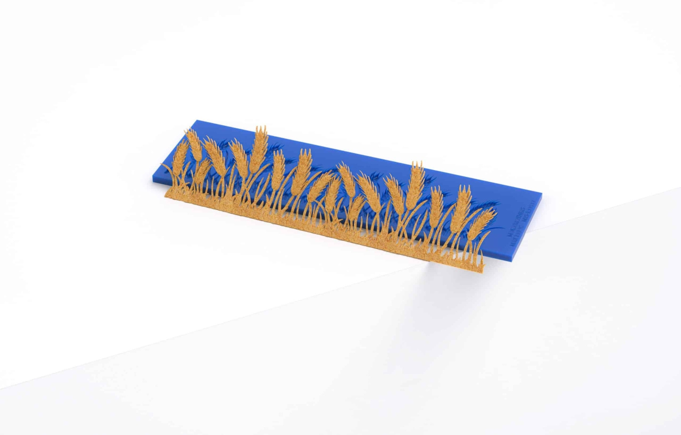 Vetefältet är inte en enskild form utan en repetition. Strån som står tätt, böjer sig, korsar varandra och skapar en yta som rör sig mellan struktur och slump. Wheat Field Tuille Mold översätter detta till ett sammanhängande fält i miniatyr, där varje strå är definierat och samtidigt en del av helheten. Formen är tredimensionell och ger verkligt djup snarare än en platt relief. Den är tillverkad i 100% livsmedelsgodkänt silikon och tål temperaturer från -40°C till +200°C.
