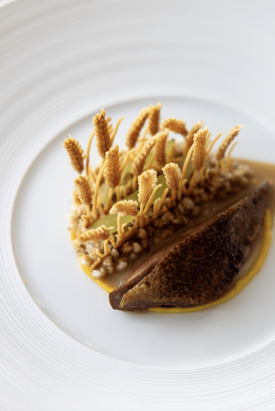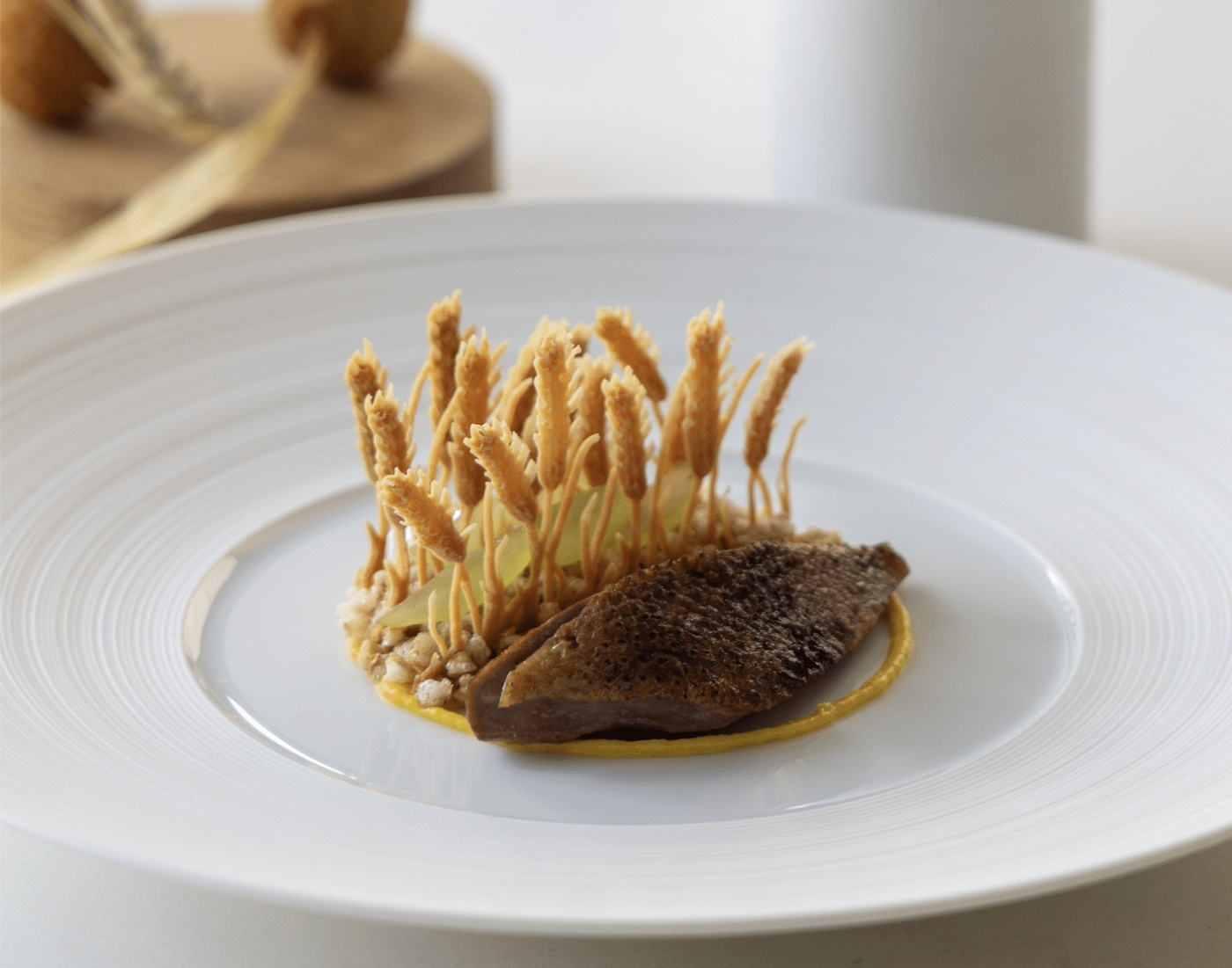 I köket: en spannmålsbaserad tuile som speglar råvaran i en rätt med vilt och rostade toner, ett krispigt element som bryter av mot en mjuk puré av rotsaker, eller ett tunt ark som läggs över en rätt och skapar både höjd och textur. Formen fungerar särskilt väl där råvaran redan har en koppling till jord och odling. I konditoriet: en tuile med malt och honung som förstärker en dessert av äpple och korn, ett lätt krispigt ark som bryts över en yoghurt- eller gräddbaserad dessert, eller en karamelliserad tolkning där ljuset fångas i varje strå och ger liv åt ytan.