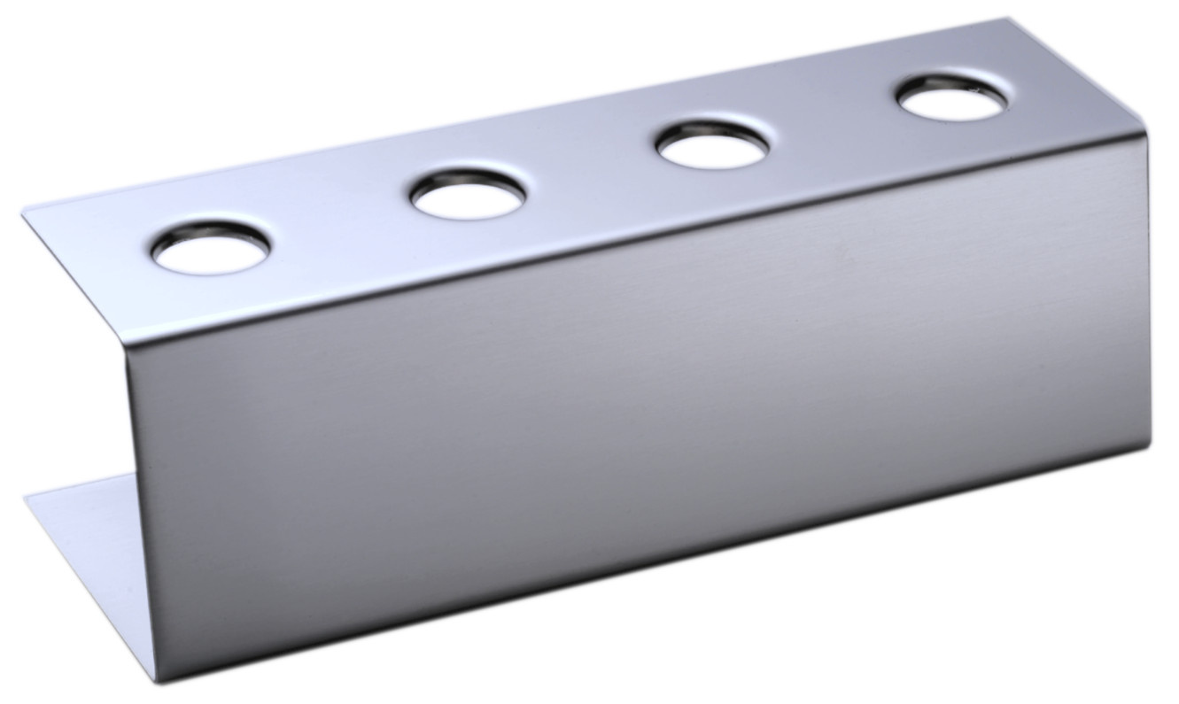 Hållare för glasstrutar som är både robust och praktisk. Hållarna är tillverkade i Tyskland av rostfritt stål och är designad för att ge struktur och ordning i serveringen. Hålen på Ø 26 mm håller den strutarna upprätt och lättillgängliga under service, i glassdiskar, på bufféer eller vid evenemang.