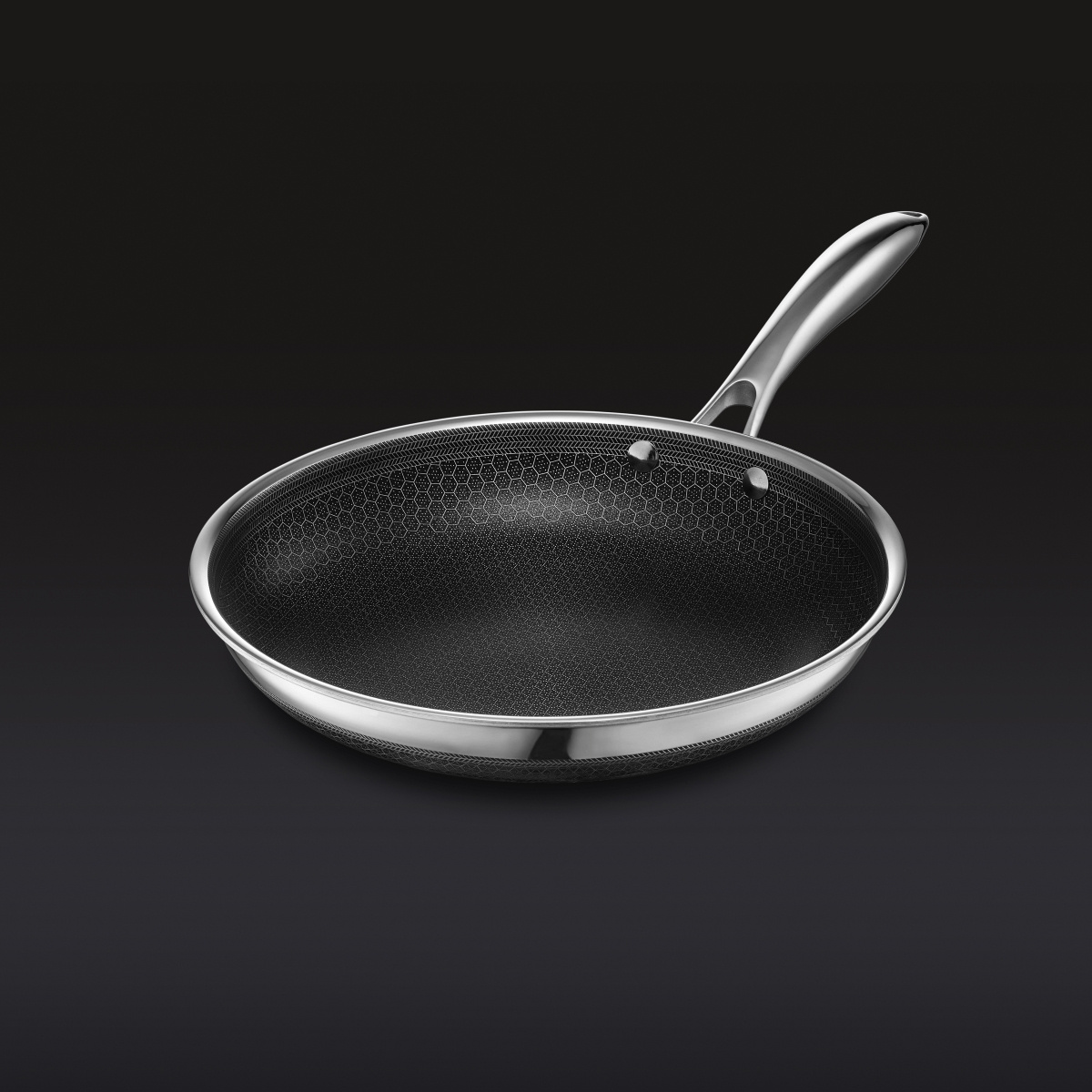 Hexclad stekpanna 26 cm är en hybridstekpanna för dig som vill kombinera robustheten hos rostfritt stål med en mer lättanvänd, nonstick-liknande hybridyta. Storleken passar bra för 1-3 portioner eller som allroundpanna i vardagsköket.