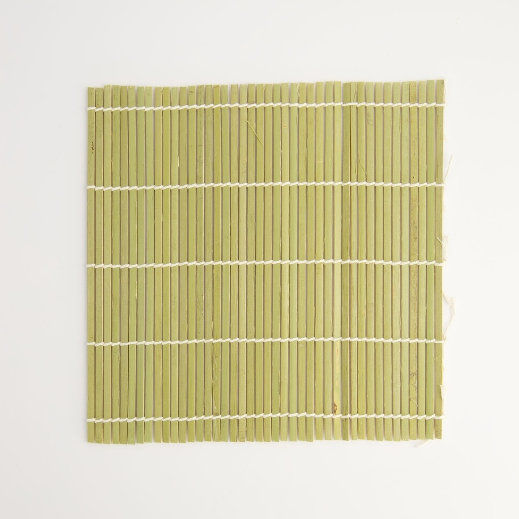 Den här modellen mäter 24 x 24 cm, en klassisk storlek som passar både till vanliga makirullar och tunnare hosomaki. Efter användning sköljs mattan i kallt vatten och torkas luftigt. Ris som fastnat får man bäst bort med en mjuk borste snarare än diskmedel.