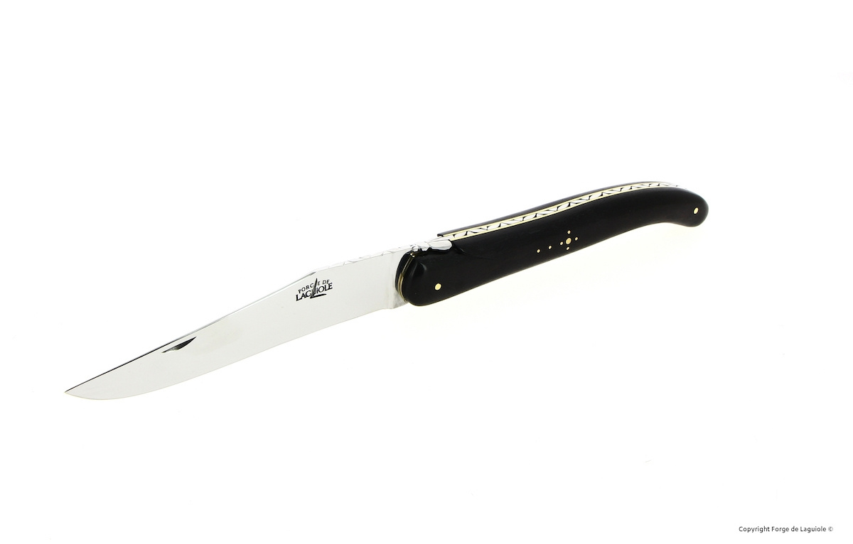 Trancherset 21 cm, Handtag av Ebenholts, fällbar, Signature - Forge de Laguiole