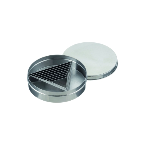 Setet innehåller nio utstickare i triangelform med slät egg, tillverkade i 0,4 mm rostfritt stål, med sidolängder från 42 till 124 mm i nio steg. Höjden på 30 mm ger formarna stabilitet under trycket från utskärningen. Förvaringslåda medföljer.