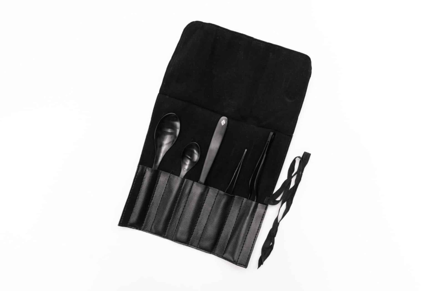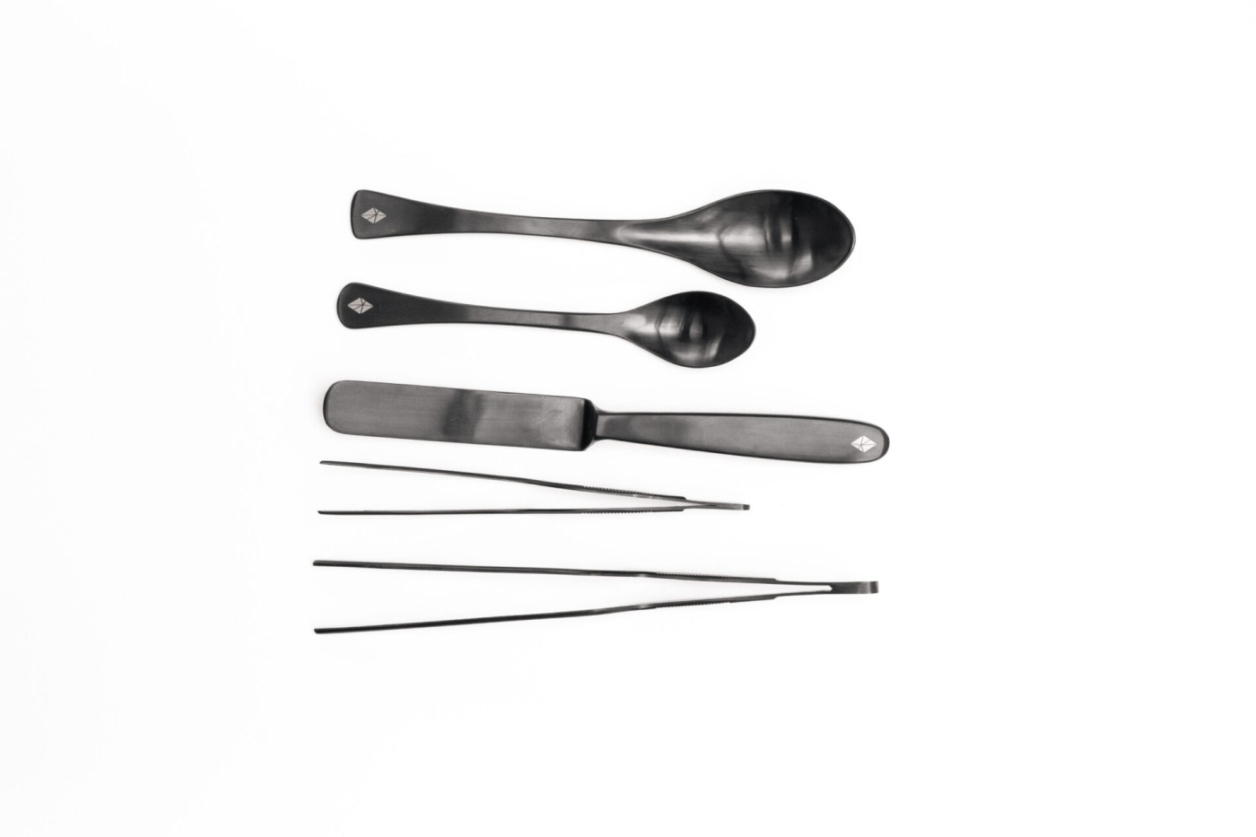 Plating är summan av små rörelser. En sked som drar, en pincett som placerar, ett blad som jämnar ut. Plating Set samlar dessa gester i ett system där varje verktyg är definierat för ett specifikt moment, men tillsammans bygger en sammanhängande precision. Setet består av en palettkniv om 9 cm, två quenelleskedar om 4,5 respektive 7 cm samt två pincetter om 8 och 10 cm. Alla delar är tillverkade i metall och levereras samlade i ett flexibel fodral för förvaring och transport.