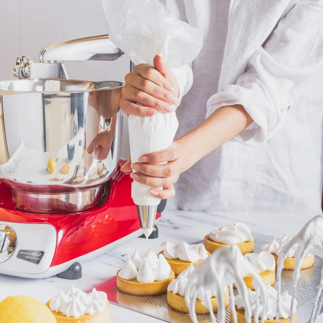 Vår vispskål i rostfritt stål är ett måste för alla som älskar att baka. Skålen är tillverkad i rostfritt stål, vilket gör den både slitstark och enkel att rengöra. Den klarar höga temperaturer och är därför perfekt för att vispa upp italiensk maräng och andra värmekänsliga kreationer. Med sin tidlösa design är den inte bara ett praktiskt tillbehör, utan också ett elegant inslag på din köksbänk.