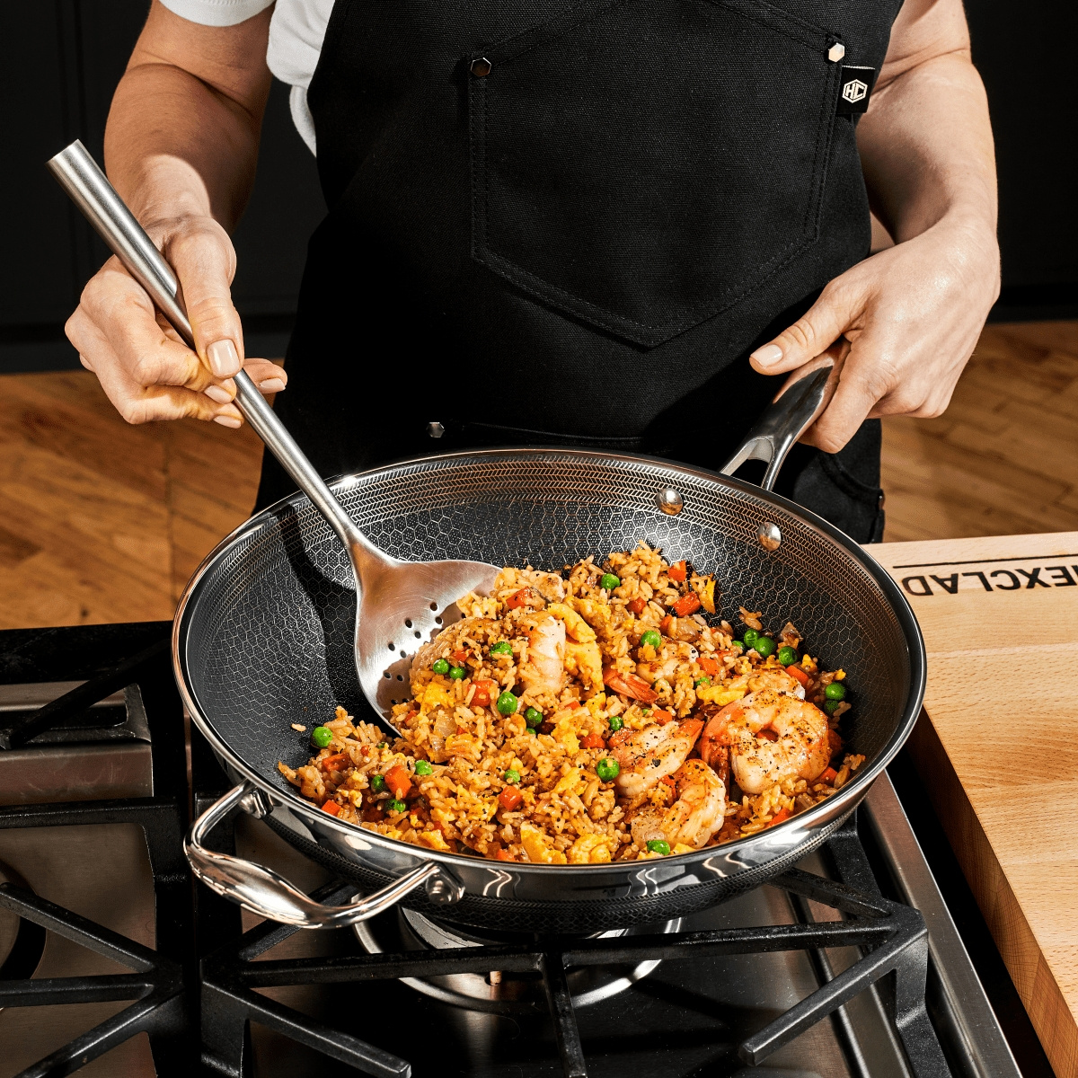 Hexclad Wok 30 cm är ett robust och flexibelt verktyg för dig som ofta lagar wok, stir-fries eller andra rätter där snabb värme och rörelse är centralt.